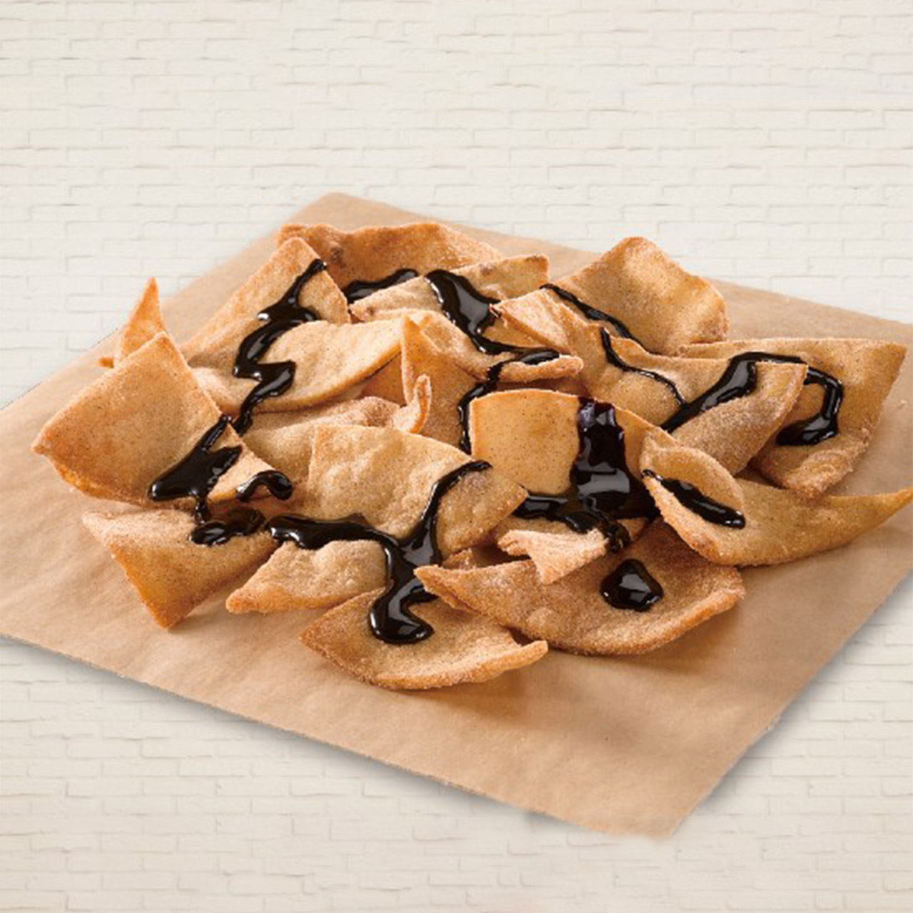 サクサクに揚げたトルティーヤにシナモンシュガーをまぶし、チョコレートソースorシナモンソースをかけたタコベル自慢のスイーツです。