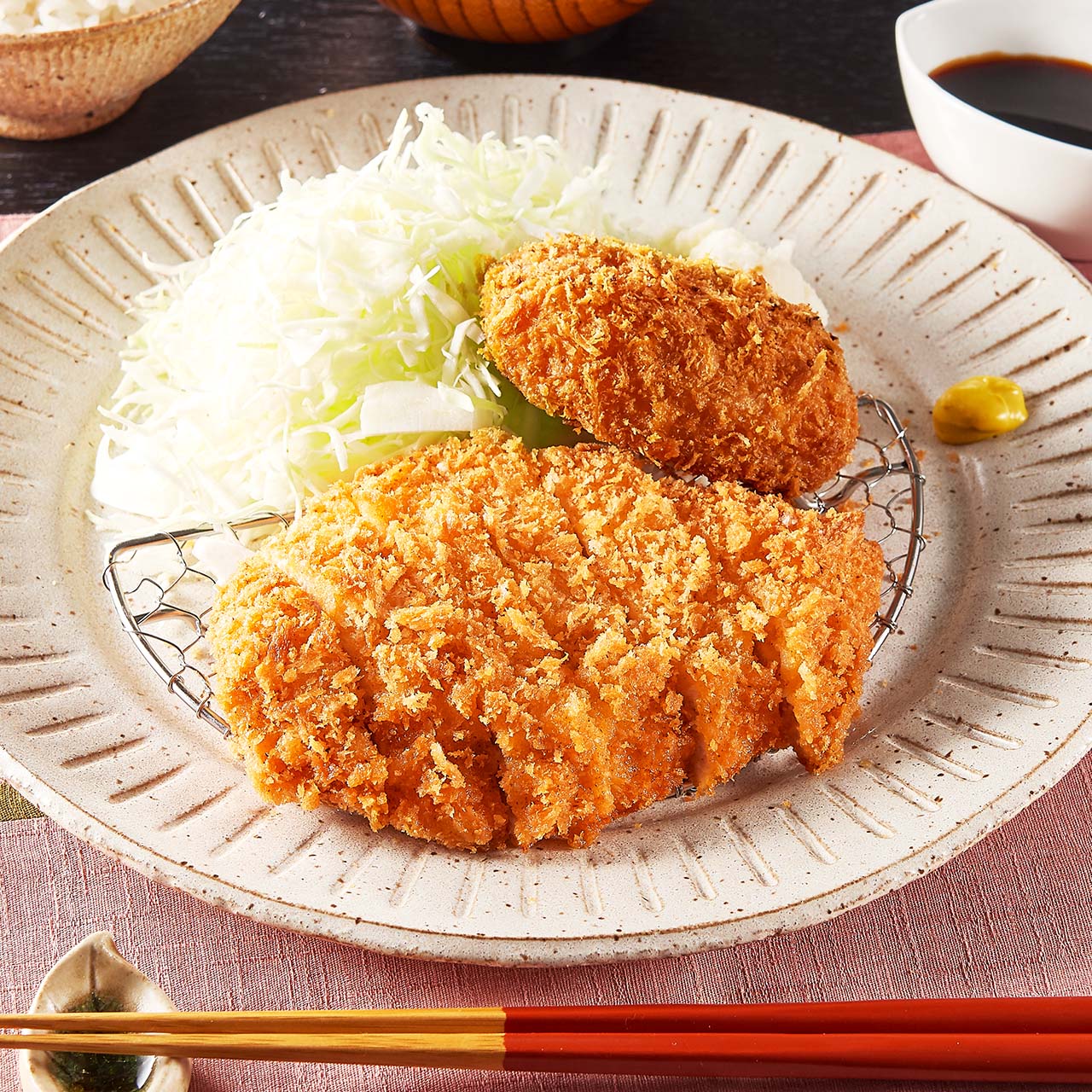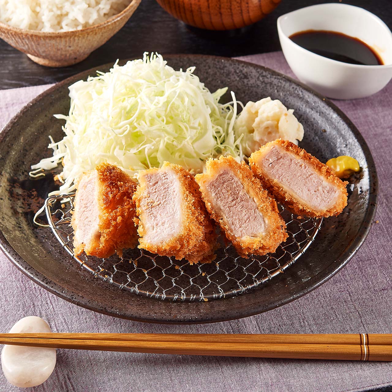 良質な旨味が溢れる厳選三元豚を使い、ご注文を受けてから揚げた揚げたてかつのお肉の美味しさを引き出すようにやわらかくふっくらと揚げました。上質な美味しさをお手軽にお届けいたします。